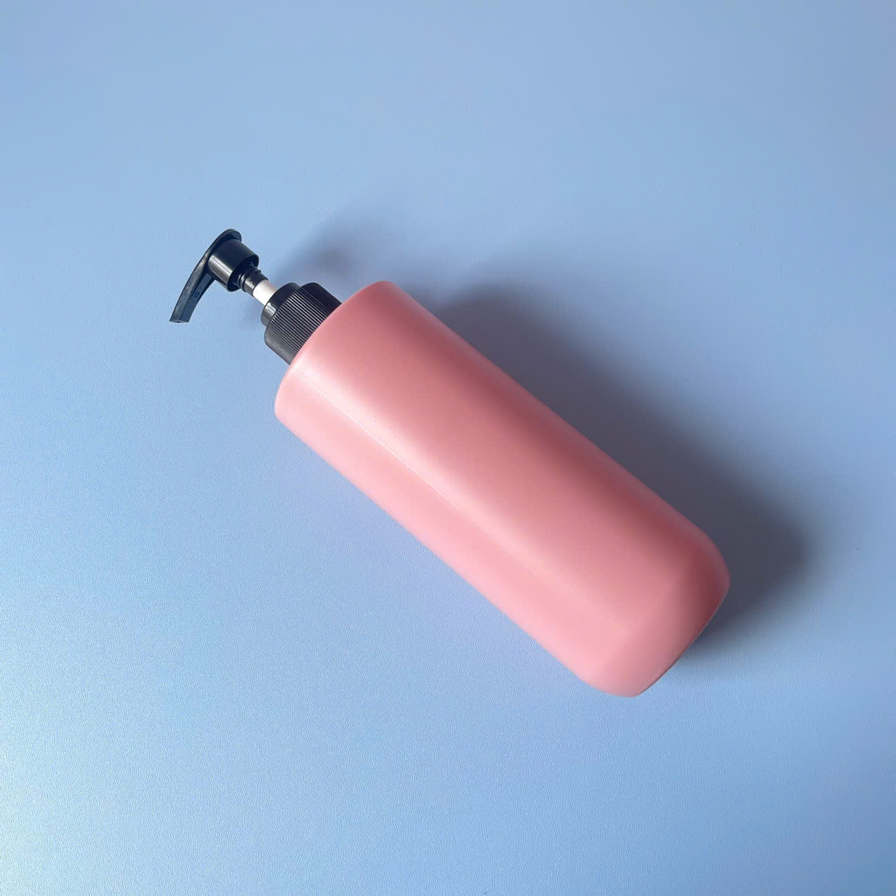 > Chai HDPE hồng vai ngang đáy bầu vòi nhấn dẹp hồng nhám 500ml